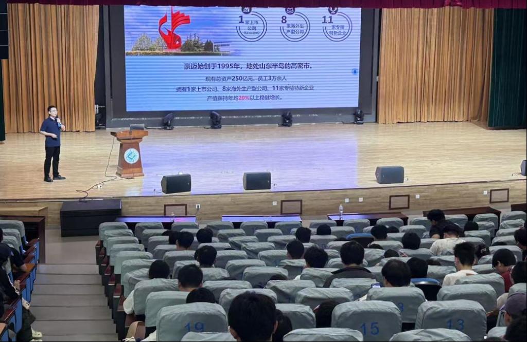 9月25日下午,山东劳动职业技术学院电气及自动化系在办公楼一楼报告厅成功举办“豪迈匠才班”宣讲会。电气及自动化系主任尹四倍、豪迈集团人力资源经理沈加同出席活动,2024级电气自动化技术、机电一体化技术专业学生参加宣讲。