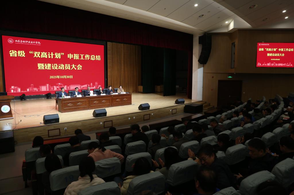 靳建国、王世臣分别宣读了《关于对省级“双高计划”学校申报工作作出突出贡献集体及个人给予表扬的通报》《山东劳动职业技术学院关于成立省级“双高计划”建设组织机构的通知》,进一步凝聚共识、明确组织架构。