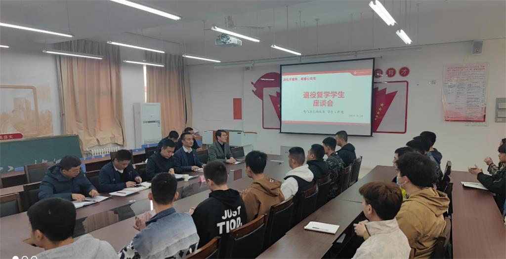 为进一步了解退役复学学生学习、生活、思想现状,全力做好退役军人服务保障工作,3月23日,学生工作处深入电气及自动化系调研退役复学工作,15名退役复学学生参加调研会。