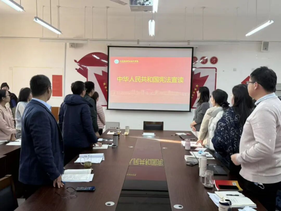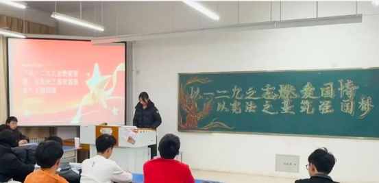 12月4日国家宪法日之际,系团总支副书记王前宇在6302合堂组织开展“读宪法、学宪法、讲宪法学”宪法学习集体活动。老师以案释法,解读宪法精髓;学生聆听专注,互动反响热烈,有效提升了法治素养,助力法治校园建设。