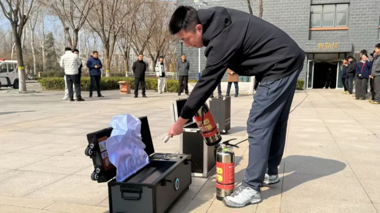 在疏散集合地点,现场开展了消防器材实操培训。安全保卫处专业人员详细讲解了灭火器"提、拔、握、压"操作要领及消防栓使用方法,并指导师生进行实际操作训练,确保人人掌握初期火灾扑救技能。