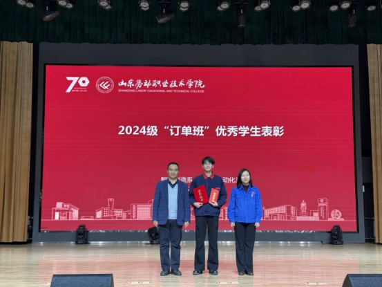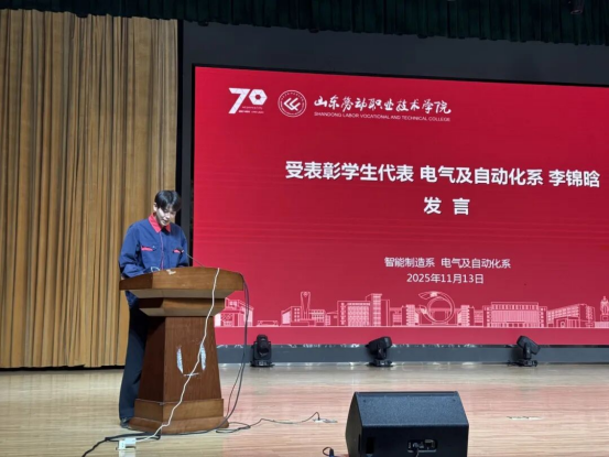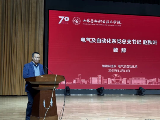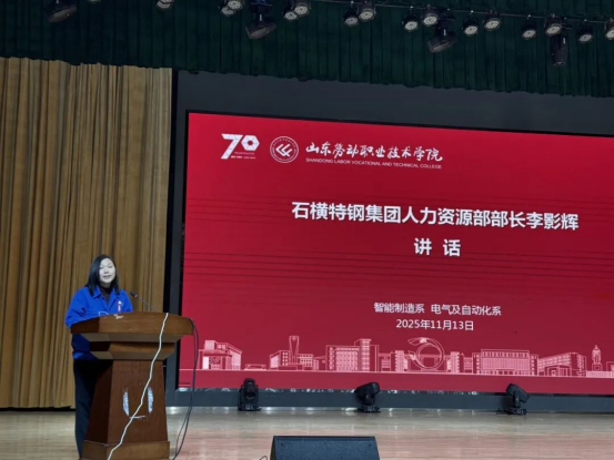 11月13日,石横特钢企业集团2024级订单班表彰大会暨2025级新生宣讲会在山东劳动职业技术学院(长清校区)一楼报告厅成功举办。电气及自动化系党总支书记赵秋叶,智能制造系党总支副书记孙大铭,石横特钢集团人力资源部部长李影辉,人力开发与管理科科长管国亮以及两系辅导员、教师,学生代表400余人参加大会。电气及自动化系2024级学生李锦晗荣获一等奖学金,侯明蔚、李世豪、周剑等3名同学荣获二等奖学金。