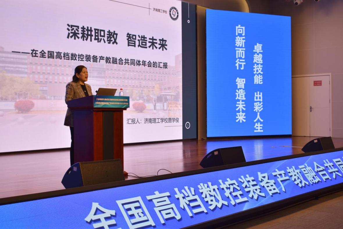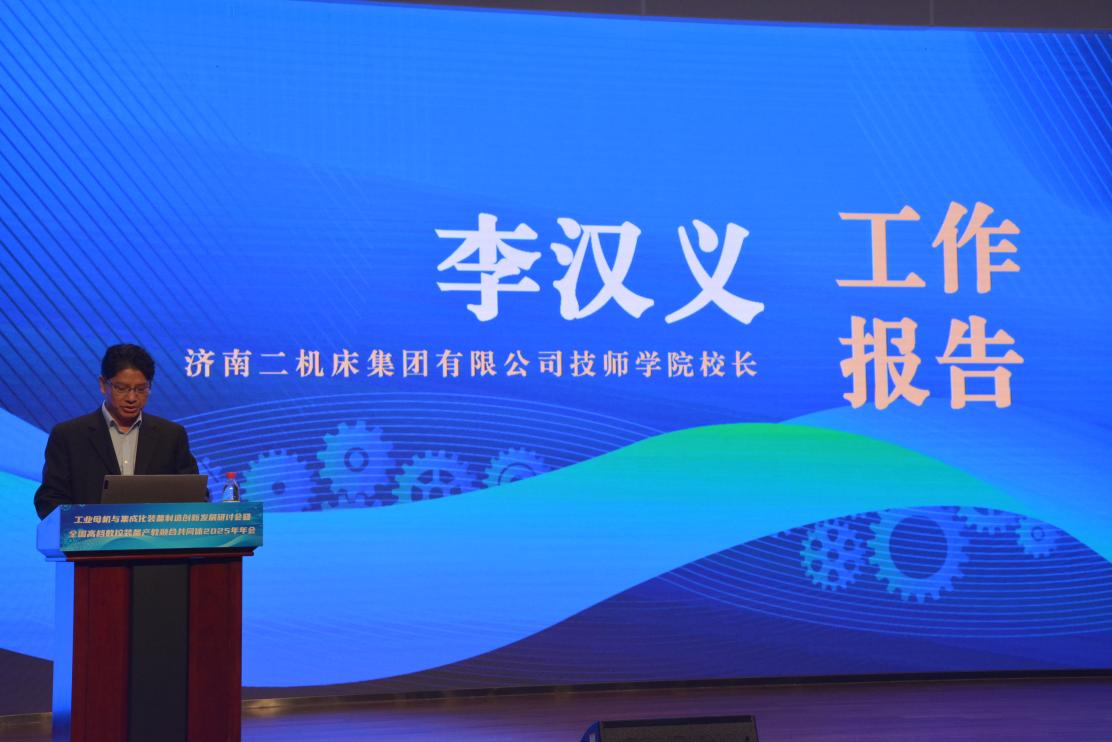 济南二机床集团有限公司技师学院校长李汉义代表全国高档数控机床产教融合共同体作年度报告。总结了共同体2025年在推动产教融合、校企合作方面所取得的显著成效,分析了当前产教融合面临的挑战和机遇,提出了以“提质增效、品牌引领”为目标的2026年工作计划。