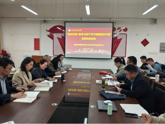 为进一步规范政府采购与资产管理工作,强化风险防控意识,扎实推进党建与业务深度融合,2025年10月23日,电气及自动化系党总支与直属纪检财务党支部联合开展了“清风护航—政采与资产审计问题整改专题”联学共建活动。直属纪检财务党支部书记、审计处处长于文霞,学院纪委副书记、纪检监察室主任马坤,电气及自动化系党总支副书记、主任尹四倍及两支部全体党员参加活动。活动由电气及自动化系党总支书记赵秋叶主持。